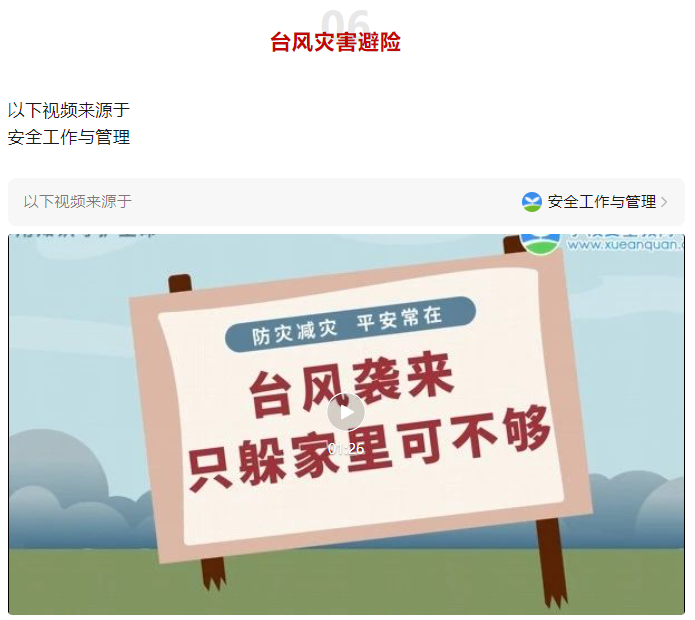 7. 台风信号解除后,要在撤离地区被宣布为安全地区以后才可返回。